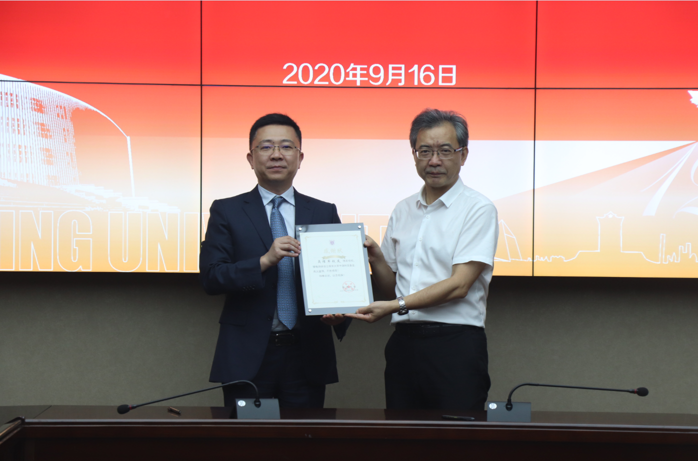 9月16日,南京大學中旗科技基金捐贈設立儀式在南京大學仙林校區舉行。南京大學黨委常委、常務副校長談哲敏,中旗科技董事長吳耀軍等領導及相關工作人員參加了儀式,儀式由南京大學化學化工學院黨委書記朱成建主持。